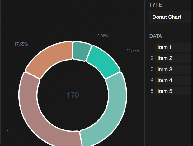 - Bar, Line, Area, Pie, Donut, Scatter, Funnel