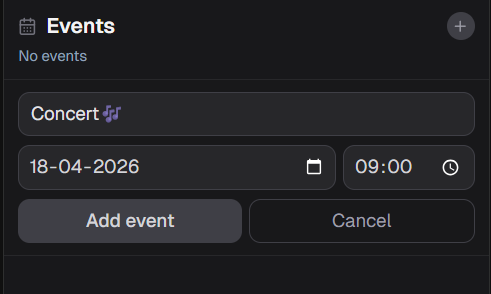 - Add events with date and time