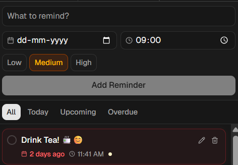 - Create reminders via AI or manually